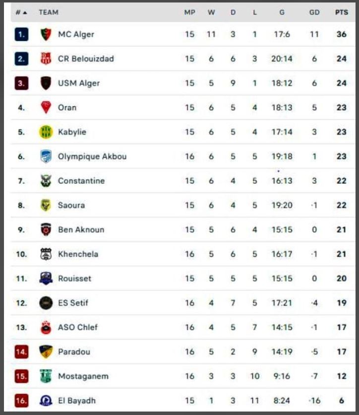 وتشكّلت لائحة الترتيب على النّحو التالي: