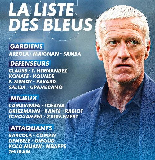 وأعلن النّاخب الوطني الفرنسي ديدييه ديشان مساء الخميس، عن قائمة لاعبي فريق “الدّيكة” الذين سيخوضون منافسة “الأورو”، وعددهم 25، وقد خلت من اسم ياسين عدلي.
