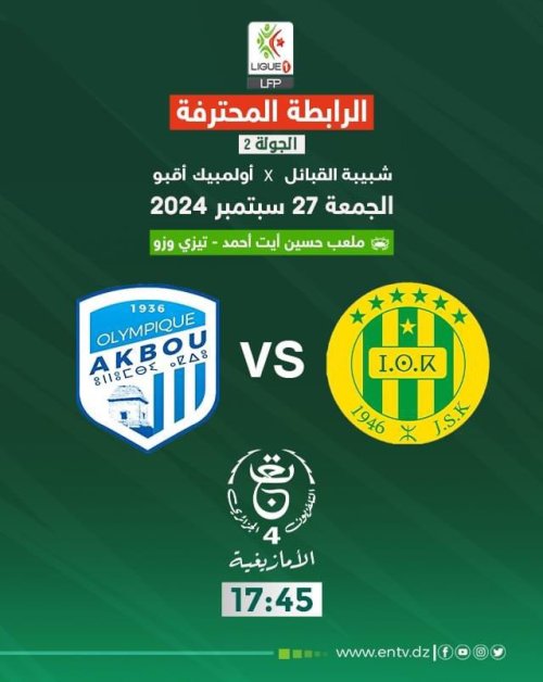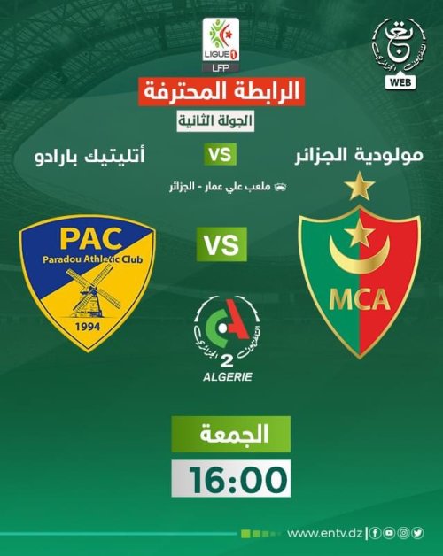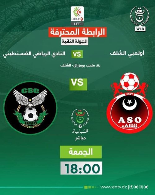 ينقل التلفزيون العمومي الجزائري هذا الجمعة ثلاث مقابلات، بِرسم الجولة الثانية من عمر البطولة الوطنية لِكرة القدم.