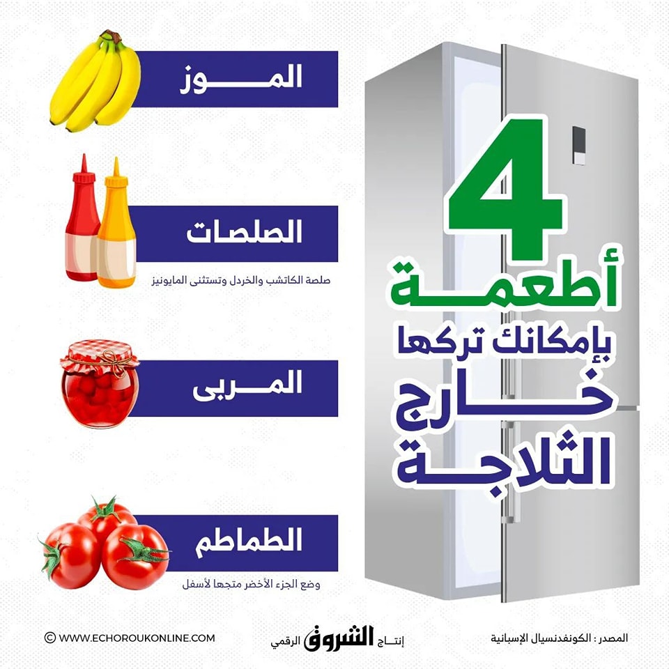 في هذا الإنفوجراف نستعرض 4 أطعمة بإمكانك تركها خارج الثلاجة: