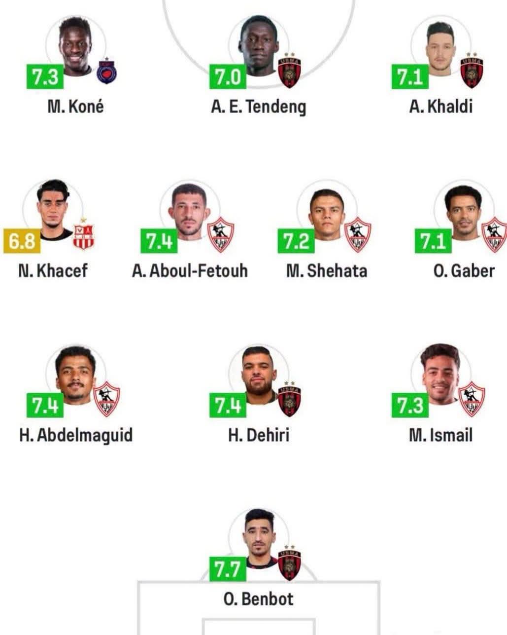 وتواجد ضمن التشكيل المثالي كل من الحارس أسامة بن بوط، والمدافع دهيري، وأحمد خالدي، وتندونغ.