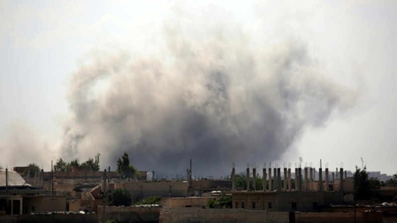 دخان يتصاعد من حي في الرقة بعد غارة للتحالف - 21 جوان 2017