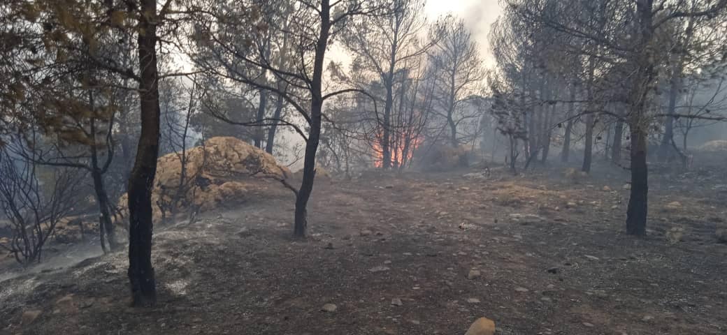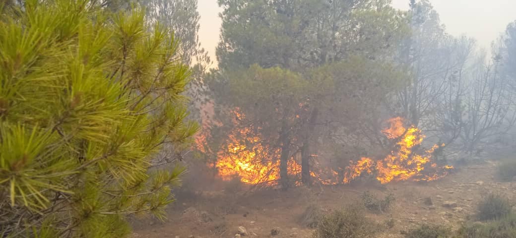 حيث تتواصل جهود الفرق المتدخلة لإخماد الحريق الذي شبّ ظهر اليوم بجبل فاخرة بمروانة، في ظل صعوبة التظاريس وكثافة الغطاء الغابي وارتفاع درجات الحرارة وهبوب الرياح.