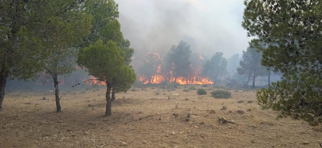 حيث تتواصل جهود الفرق المتدخلة لإخماد الحريق الذي شبّ ظهر اليوم بجبل فاخرة بمروانة، في ظل صعوبة التظاريس وكثافة الغطاء الغابي وارتفاع درجات الحرارة وهبوب الرياح.