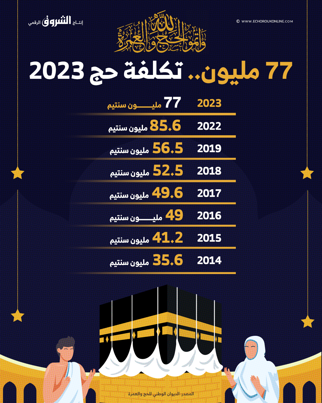 تعرف من خلال الإنفوجراف التالي على تكلفة الحج في #الجزائر خلال آخر 7 سنوات..