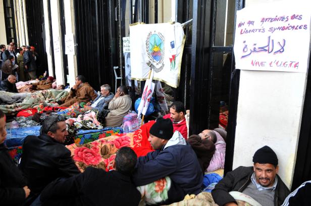 “We won’t give up, even if we die one after the other,” cried Slimani Karim, a striker Customs inspector, using a megaphone.