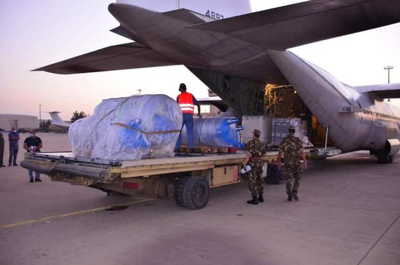 « Dans le cadre des efforts visant a soutenir le système de santé national, et assurer la disponibilité des moyens nécessaires pour la prise en charge des malades touchés par le Coronavirus, un avion de transport militaire relevant de l’Armée Nationale Populaire, a atterri dans la soirée d’hier mercredi 04 août 2021 a la Base Aérienne de Boufarik en 1ère Région Militaire, a son bord deux (02) générateurs d’oxygène, acheminés depuis l’Italie au profit de la Pharmacie Centrale des Hôpitaux »,affirme le MDN dans un communiqué.