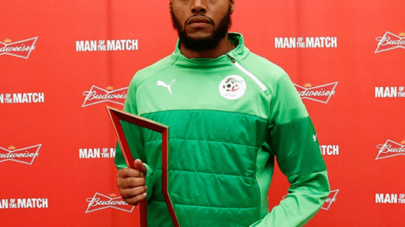 La Fédération internationale de Football (FIFA) a désigné le gardien de but des verts Rais M’bolhi comme homme du match en lui attribuant le titre de meilleur joueur du huitième de finale entre l’Allemagne et l’Algérie (2-1 AP). Il a arrêté dix tirs décisifs allemands et a héroïquement protégé son camp des rafales des machines allemandes.