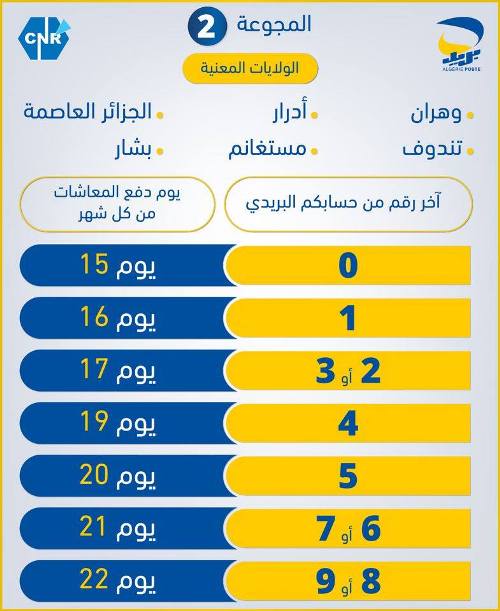 Algérie Poste a arrêté de nouvelles dates de versement des pensions de retraite en se référant au dernier chiffre du numéro de compte courant sans prendre en considération le numéro de la clé.