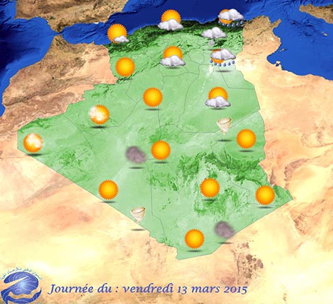 Alerte aux mauvais temps, Météo Algérie a lancé un bulletin météo spécial (BMS) pour la journée du vendredi 6 mars 2015.