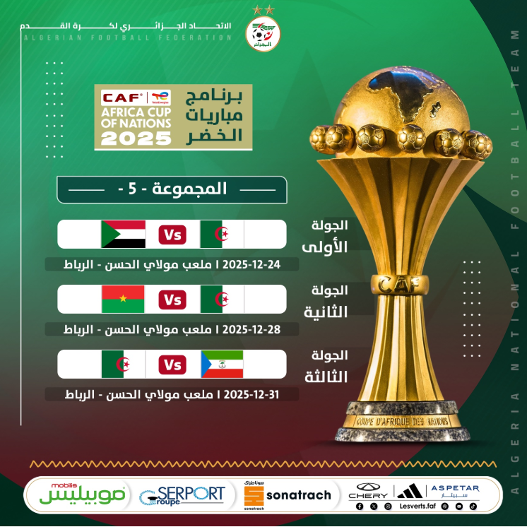 L’Algérie, dont il s’agit de la 21e participation, s’est qualifiée haut la main pour la CAN-2025, en dominant le groupe E avec 16 points en six matchs, devant la Guinée-équatoriale (8 pts), le Togo (5 pts), et le Libéria (4 pts).