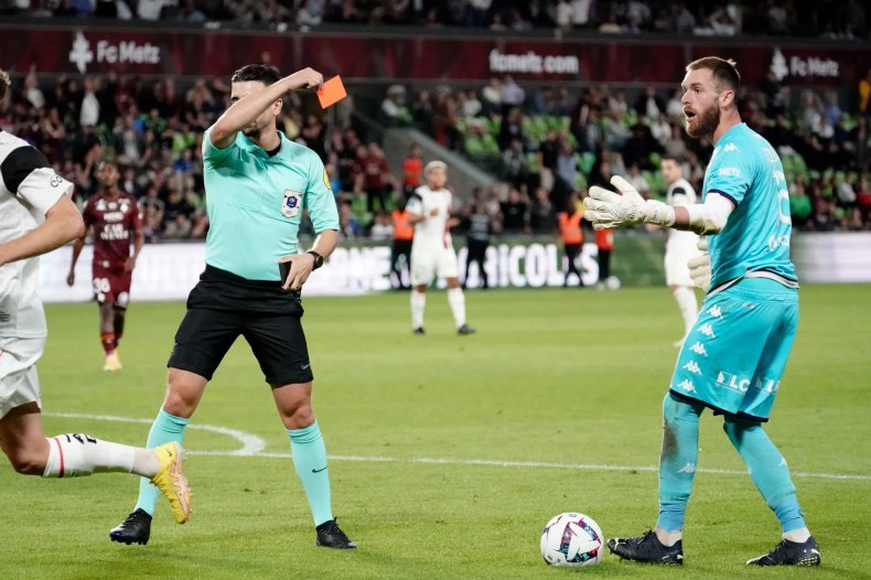 L’arbitre Pierre Gaillouste a été vivement conspué par le public grenat. Pour le gardien du FC Metz, le début de saison est compliqué. Sa sortie prématurée avant la mi-temps, entraînant qui plus est un pénalty pour l’équipe adverse, a accéléré la chute de son équipe, touchant même l’international algérien qui regagnait les vestiaires en larmes. L’arbitrage de Pierre Gaillouste, qui avait arbitré le LOSC face a Nantes la saison dernière et exclu Timothy Weah sur une faute discutable, ne manquera pas de faire débat dans les prochaines heures.