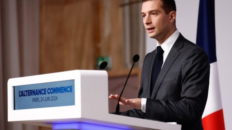 Le président du Rassemblement national (RN), Jordan Bardella, a confirmé lundi (24 juin) vouloir supprimer le droit du sol en France, après les élections législatives anticipées des 30 juin et 7 juillet, mais n’est pas revenu sur son concept de « double frontière » ou sur le pacte européen sur l’asile et la migration.