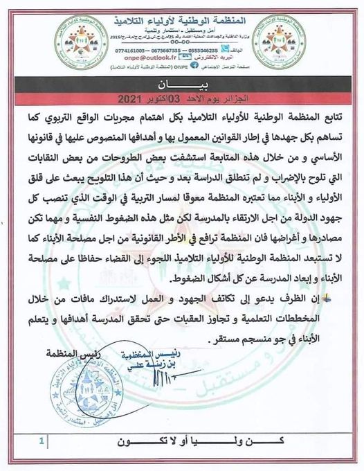 L’Organisation des parents d’élèves menace de déposer plainte si certains syndicats de l’Education observaient un mouvement de grève.