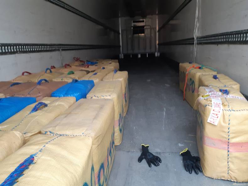 de cannabis lors d’une opération de contrôle.👉 la drogue était conditionnée dans 40 ballots chargés dans la remorque.