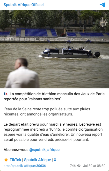 L’eau de la Seine reste trop polluée suite aux pluies récentes, ont annoncé les organisateurs.