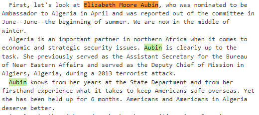 Il convient de rappeler qu’Elizabeth Moore Aubin ait occupé le poste de diplomate a l’ambassade US a Alger de 2011 a 2014.