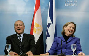 Le ministre égyptien des affaires “étranges” Aboul Ghit semble bien se marrer avec sa nouvelle “copine” Tzipi. Elle est venue l'informer de la tuerie que son armée allait commettre le lendemain à Gaza. Il a tellement aimé qu'il a éclaté de rire…sur le sort de Gaza. Quelle honte!