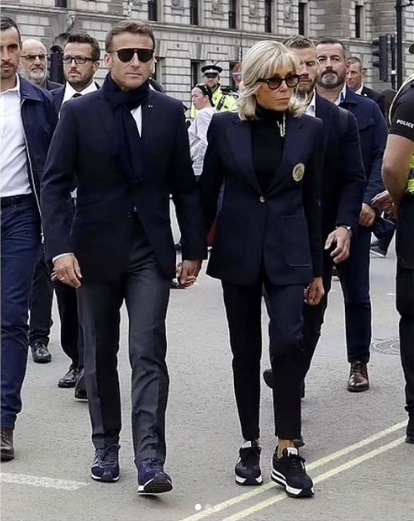 Le président français Emmanuel Macron est arrivé dimanche au palais de Westminster, où était exposé le cercueil de la reine. Le couple présidentiel s’est déplacé a pieds, en lunettes de soleil et en baskets, s’attirant des commentaires outrés des tabloïds.