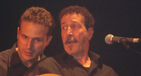 L’artiste a longtemps été accompagné d’un seul instrument à corde (mandole et surtout guitare) et d’une percussion (derbouka). Il est souvent accompagné à la flûte par son fils, Djaafar.