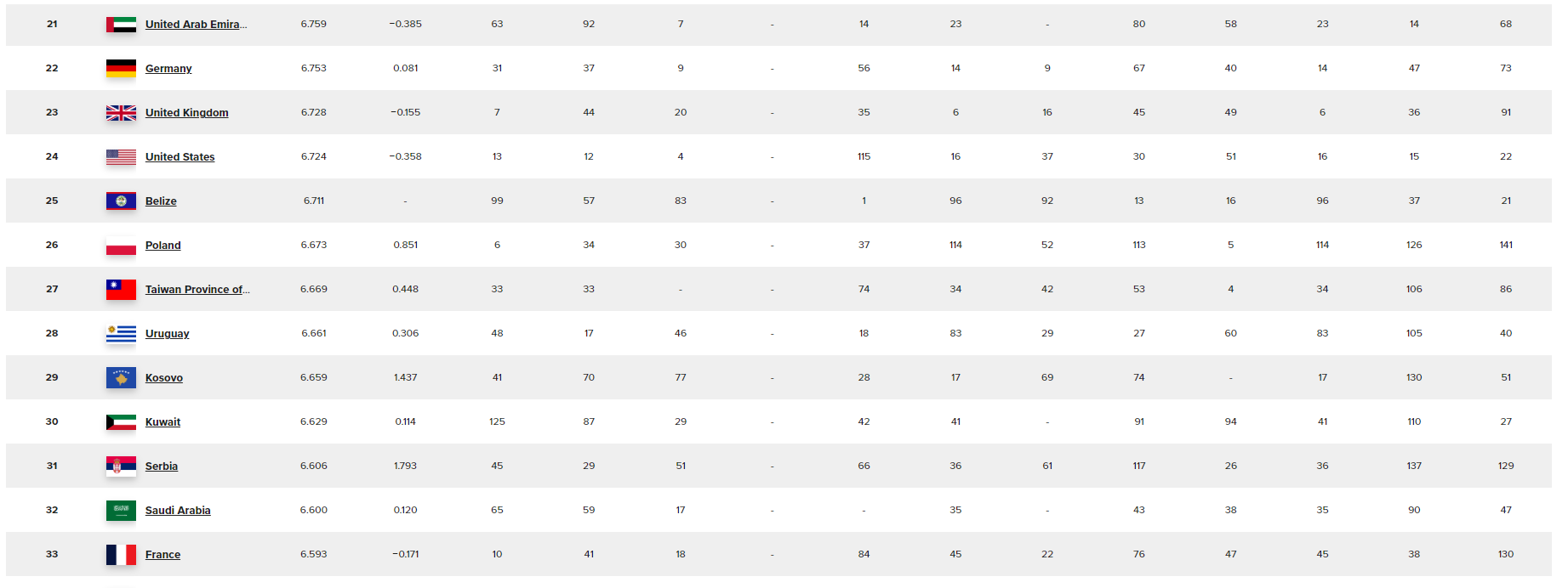 En revanche, le Maroc, la Tunisie, la Mauritanie et l’Égypte ne figurent pas dans ce TOP 10 en occupant respectivement les (112e), (113e), (114e) et (135e) rangs mondiaux.