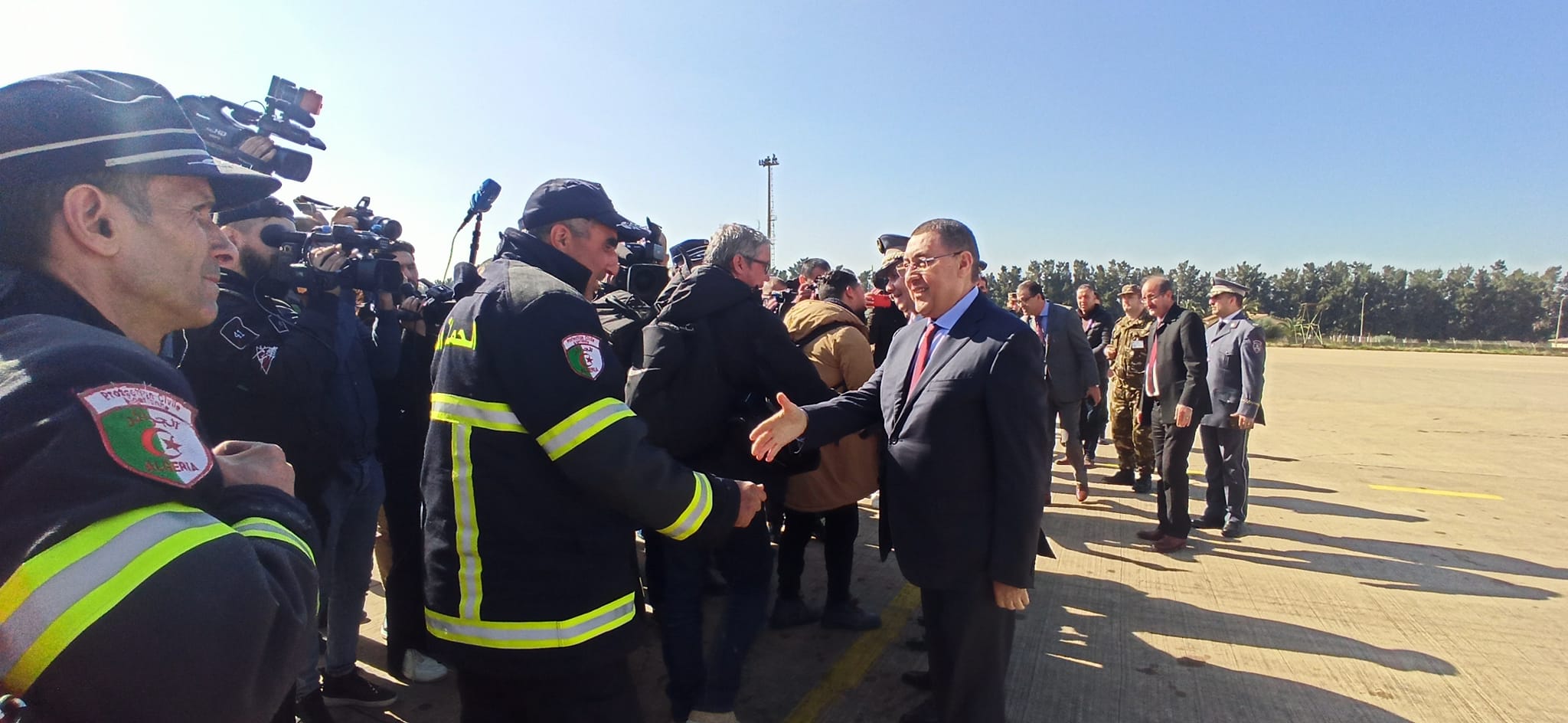 L’équipe de la Protection civile a été accueillie à la Base militaire de Boufarik (Blida) par le ministre de l’Intérieur, des Collectivités locales et de l’Aménagement du Territoire, Brahim Merad, le Directeur général de la Protection civile, le colonel Boualem Boughlaf, et la présidente du Croissant-Rouge algérien (CRA), Ibtissem Hamlaoui.