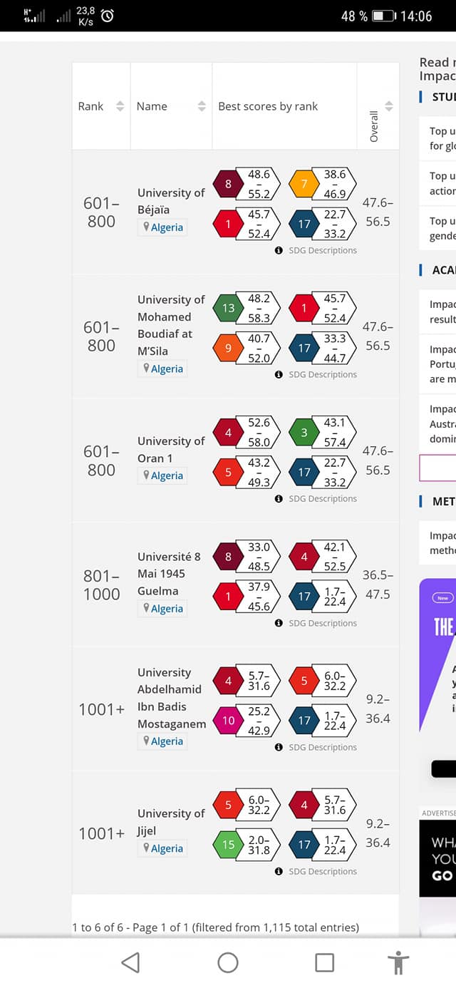 Au total, six (6) universités algériennes font partie du TOP 800 des meilleures universités au monde.