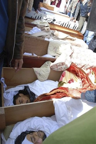 Les quatre corps avaient été enterrés sur le bord de la route près de la  localité d’Oum Khumsis, à environ 5 km en retrait de la ligne du front est de  Syrte, bastion pro-Kadhafi qui constitue l’un des derniers objectifs majeurs  pour l’état-major du nouveau régime libyen.
