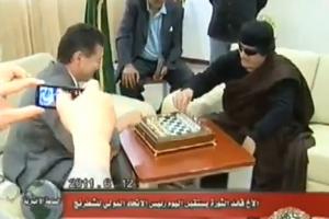 La télévision libyenne a montré dimanche soir des images du colonel Mouammar Kadhafi jouant aux échecs avec le président controversé de la Fédération internationale des échecs (Fide), le Russe Kirsan Ilioumjinov.