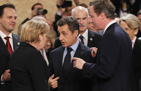Vendredi, lors d’un sommet des 27 dirigeants des pays de l’Union européenne consacré conflit en Libye, le Premier ministre britannique, David Cameron a estimé que l’UE devait se préparer « à toute éventualité » pour chasser Mouammar Kadhafi du pouvoir. Le président français, Nicolas Sarkozy, a de son côté fait part de la « disponibilité de la France pour des actions ciblées purement défensives, au seul cas où M. Kadhafi ferait usage d’armes chimiques ou de l’aviation contre des populations qui manifestent sans violence ». Il a cependant précisé qu’une telle intervention n’aurait lieu que si l’ONU et l’opposition libyenne le souhaitent et si la Ligue arabe l’accepte. Pour rappel, la France est la première nation à reconnaître le Conseil national de transition (CNT) comme représentant de la Libye.