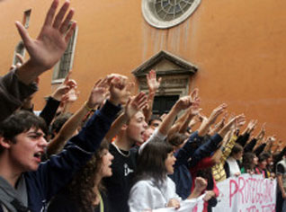 - La rue italienne gronde déjà depuis quelques jours protestant contre la situation socio-économique du pays et les réformes du gouvernement Berlusconi, notamment celle relative à l’éducation nationale.