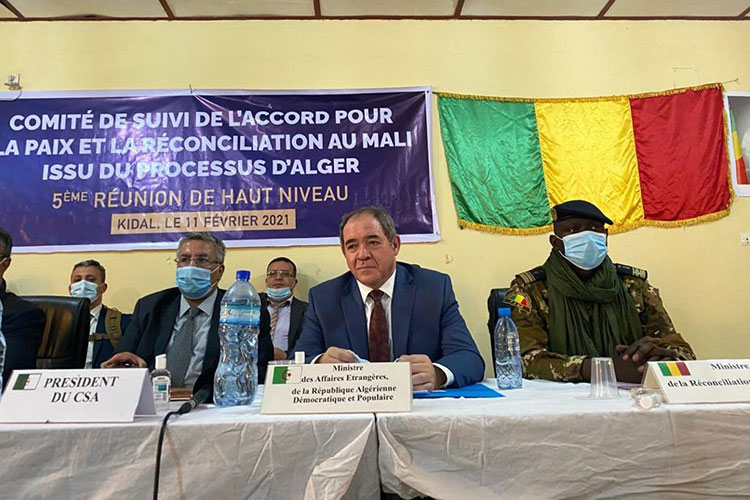 Les participants à la cinquième réunion de haut niveau du Comité de suivi de l’accord pour la paix et la réconciliation au Mali issu du processus d’Alger (CSA) signé en 2015, tenue à Kidal le 11 février 2021, sous la présidence du MAE Sabri Boukadoum, ont réaffirmé la pertinence de l’Accord en tant que cadre idoine pour restaurer durablement la paix et consolider la réconciliation au Mali.