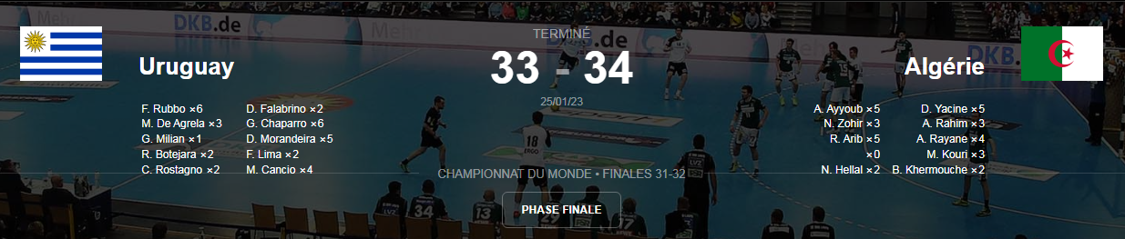 Malgré leur succès d’un petit but d’écart face à l’Uruguay (34-33), les coéquipiers de Abdi terminent à la 31ème place au classement dans ce championnat du monde.
