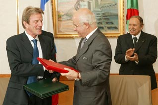 Algerian Foreign Minister Mourad Medelci and his French counterpart Bernard Kouchner
