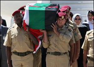 The poet’s body was flown back from the US to Amman, Jordan, where a 26-member honour guard saluted as 12 Palestine Liberation Army officers carried the flag-draped coffin from the plane, AFP news agency reported.