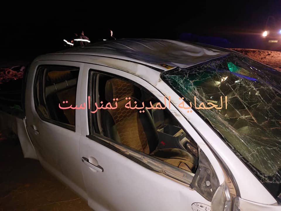 L’accident s’est produit au niveau de la route nationale (RN-1), a 150 km au Sud de Tamanrasset, suite au dérapage et au renversement d’un véhicule utilitaire, causant la mort sur le lieu de cinq (5) personnes a bord, agées entre 24 et 35 ans, selon la même source.