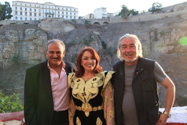 Algerian writer Ahlam Mostaghanemi, Syrian actor Jamal Suleiman and director Najdat Anzour in Constantine, east of Algeria.