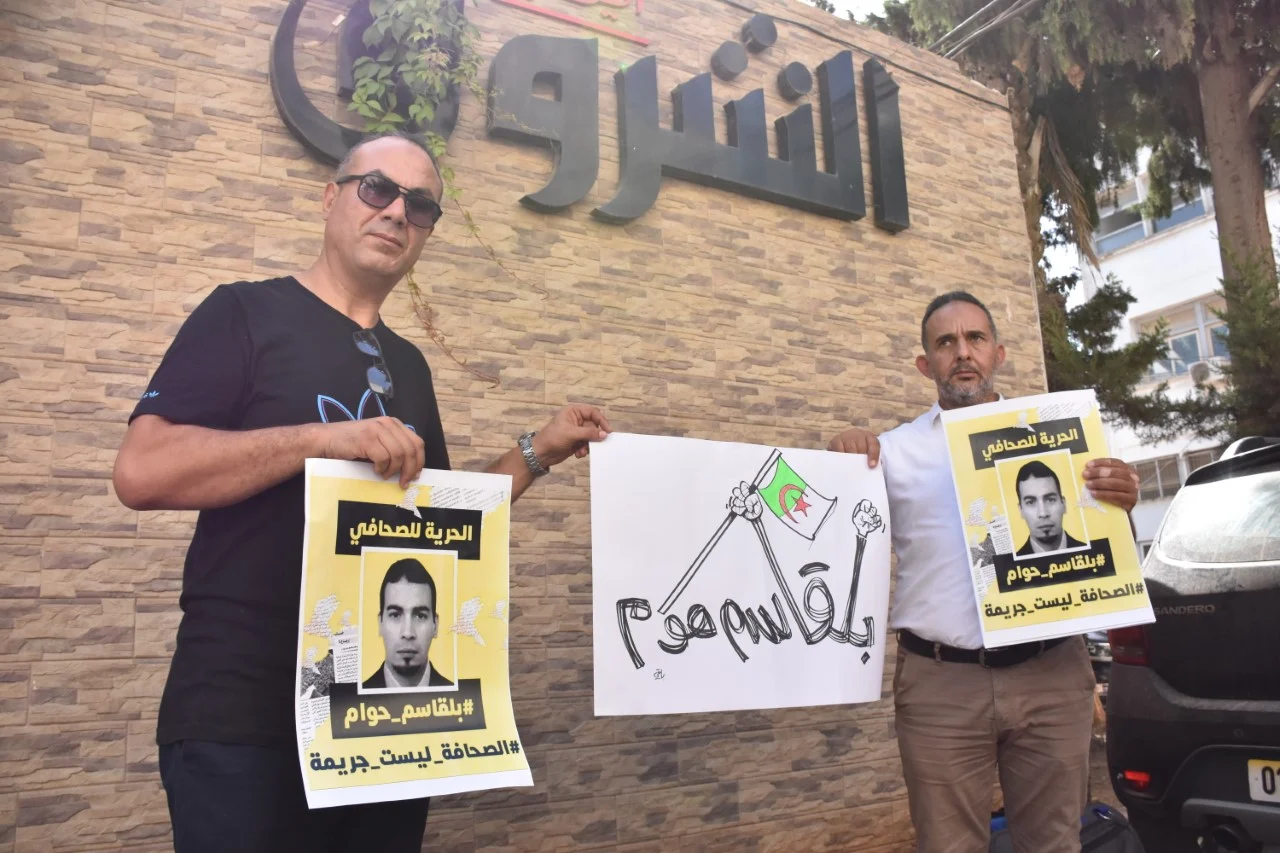 Des dizaines de journalistes se sont rassemblés ,ce mercredi 14 septmbre, a la maison de la Presse de Kouba a Alger, pour manifester leur solidarité avec le journaliste de Echorouk, Belkacem Houam, incarcéré jeudi dernier.