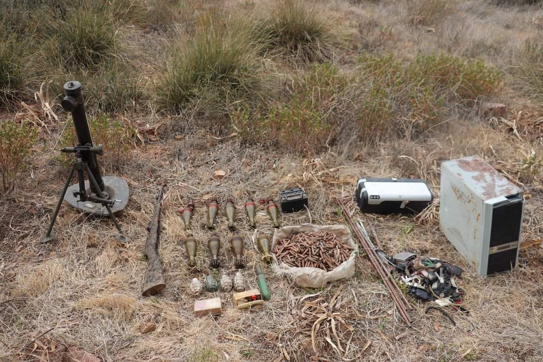 Il s’agit d'”un (01) mortier de calibre 60 mm, un (01) fusil mitrailleur de type +FMPK+, deux (02) fusils à pompe, deux (02) fusils semi-automatiques type +Simonov+, trois (03) fusils à répétition, deux (02) fusils de chasse, deux (02) pistolets automatiques type +Colt+, quatre (04) chargeurs, neuf (09) obus pour mortier 60 mm, 1646 balles de différents calibres, quatre (04) grenades et d’autres effets”, note le communiqué.