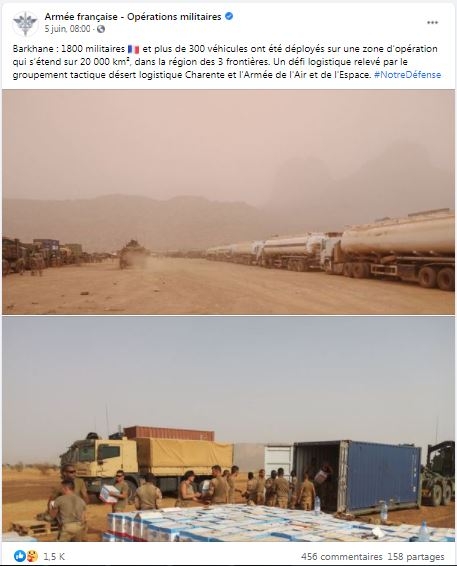 C’est également le cas avec les publications partagées depuis le 14 juin: ces posts montrent bel et bien une photo de soldats français, présents dans le nord du Mali dans le cadre de l’opération Barkhane depuis 2014 ; mais ni la douane malienne ni l’armée française ne confirment les affirmations relayées dans ces publications.