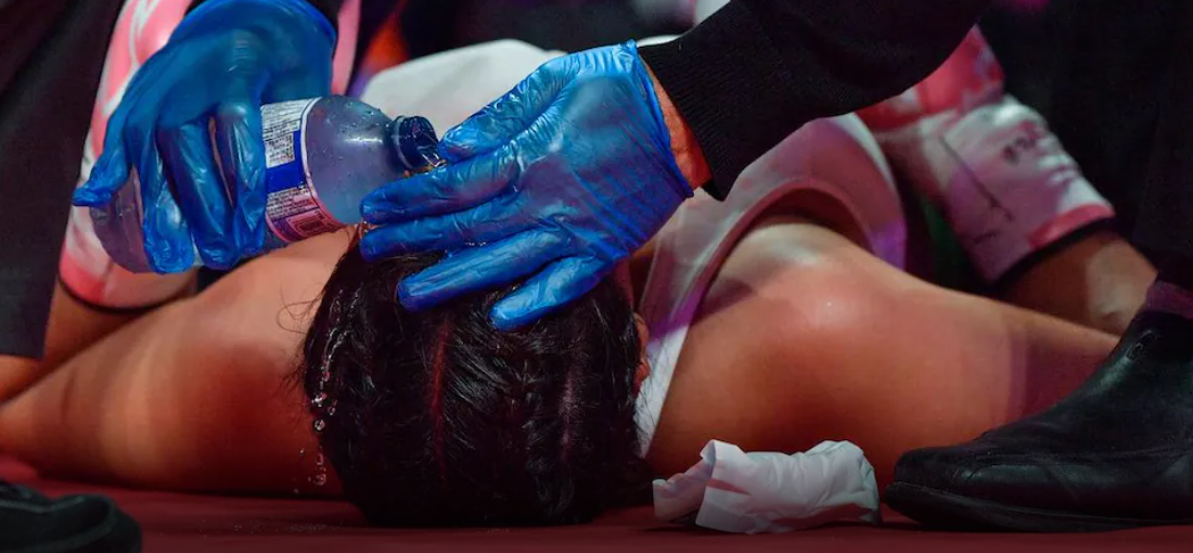 Elle n’a pas répondu a la cloche pour le cinquième round du combat professionnel prévu pour en durer six. Après avoir semblé subir une crise, elle a été sortie du ring sur une civière et emmenée a l’hôpital.