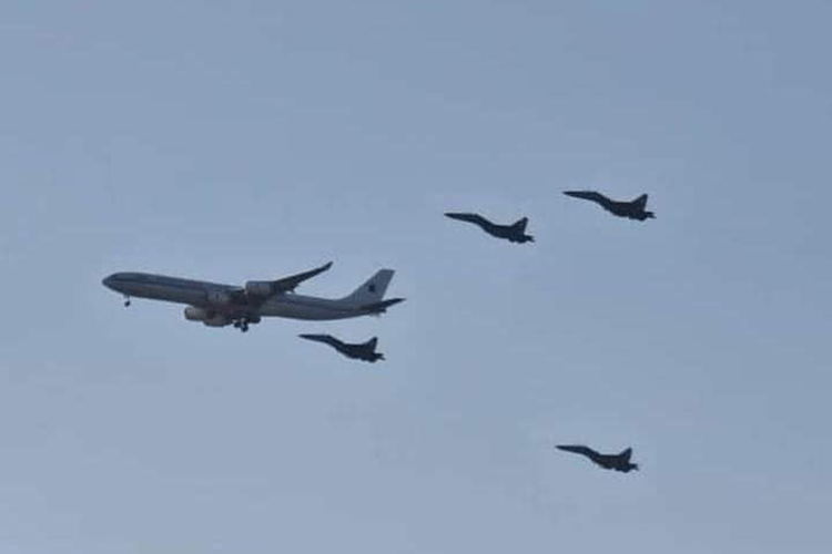 Quatre avions de chasse relevant des Forces aériennes algériennes ont escorté l’avion présidentiel dès son entrée dans l’espace aérien national et jusqu’a son atterrissage sur le tarmac de l’aéroport international Houari-Boumediene, en guise de bienvenue au président Tebboune.