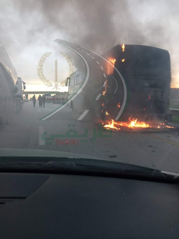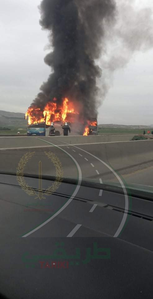 VIDEO: un bus prend feu sur l’autoroute est-ouest vers Constantine