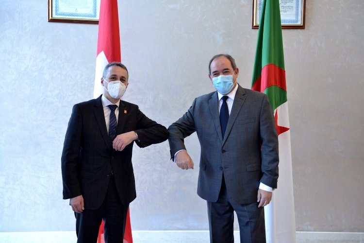 Quel plaisir de revoir mon homologue 🇩🇿 @Boukadoum_S. Au coeur des discussions: migration, paix 🕊 et sécurité en #Libye & au #Sahel. Le potentiel d‘échanges et de coopération 🇨🇭-🇩🇿 est grand 🤝 pic.twitter.com/E87D4EUrCq
