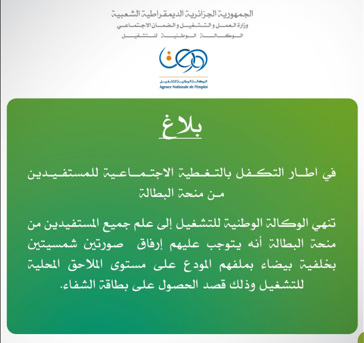 L’Agence Nationale de l’Emploi (ANEM) invite tous les bénéficiaires de l’allocation chômage a se rapprocher de ses services afin d’obtenir la carte “Chifa”.