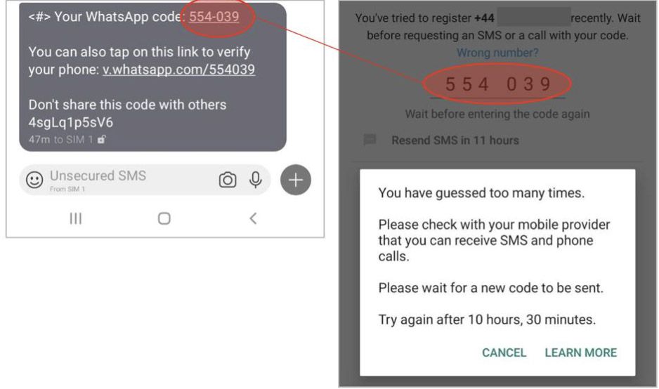 En utilisant simplement votre numéro de téléphone, une personne tierce peut tenter de se connecter a votre compte WhatsApp, et générer ainsi une multitude de codes éphémères via l’authentification a double facteur.