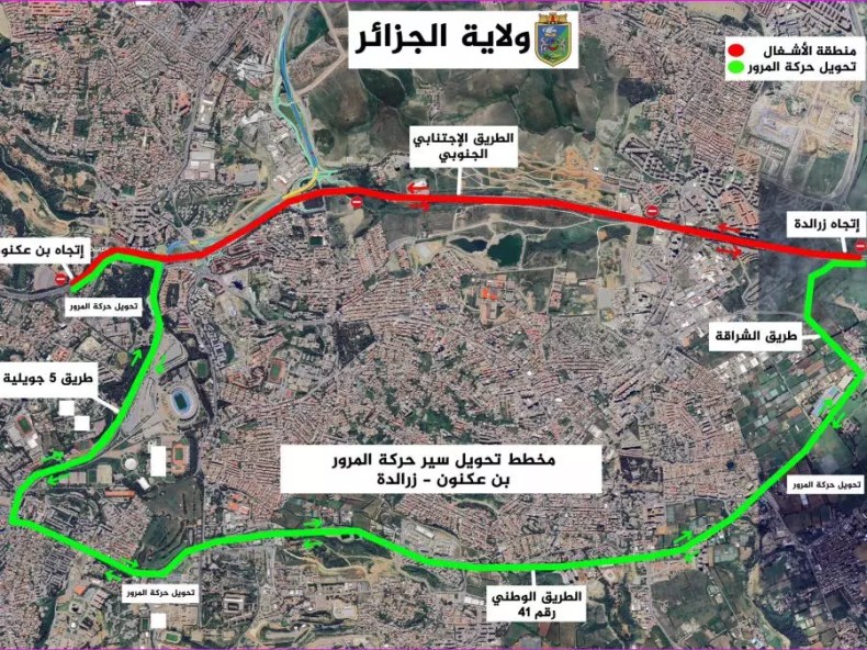 Dans ce cadre, “la circulation sera déviée comme suit : les véhicules venant de Zéralda vers Dar El Beïda devront emprunter l’échangeur de la RN 36, puis la RN 41, en passant par Chéraga et Chevalley, avant de rejoindre la rocade sud via l’autoroute du 5 Juillet”, précise le communiqué.
