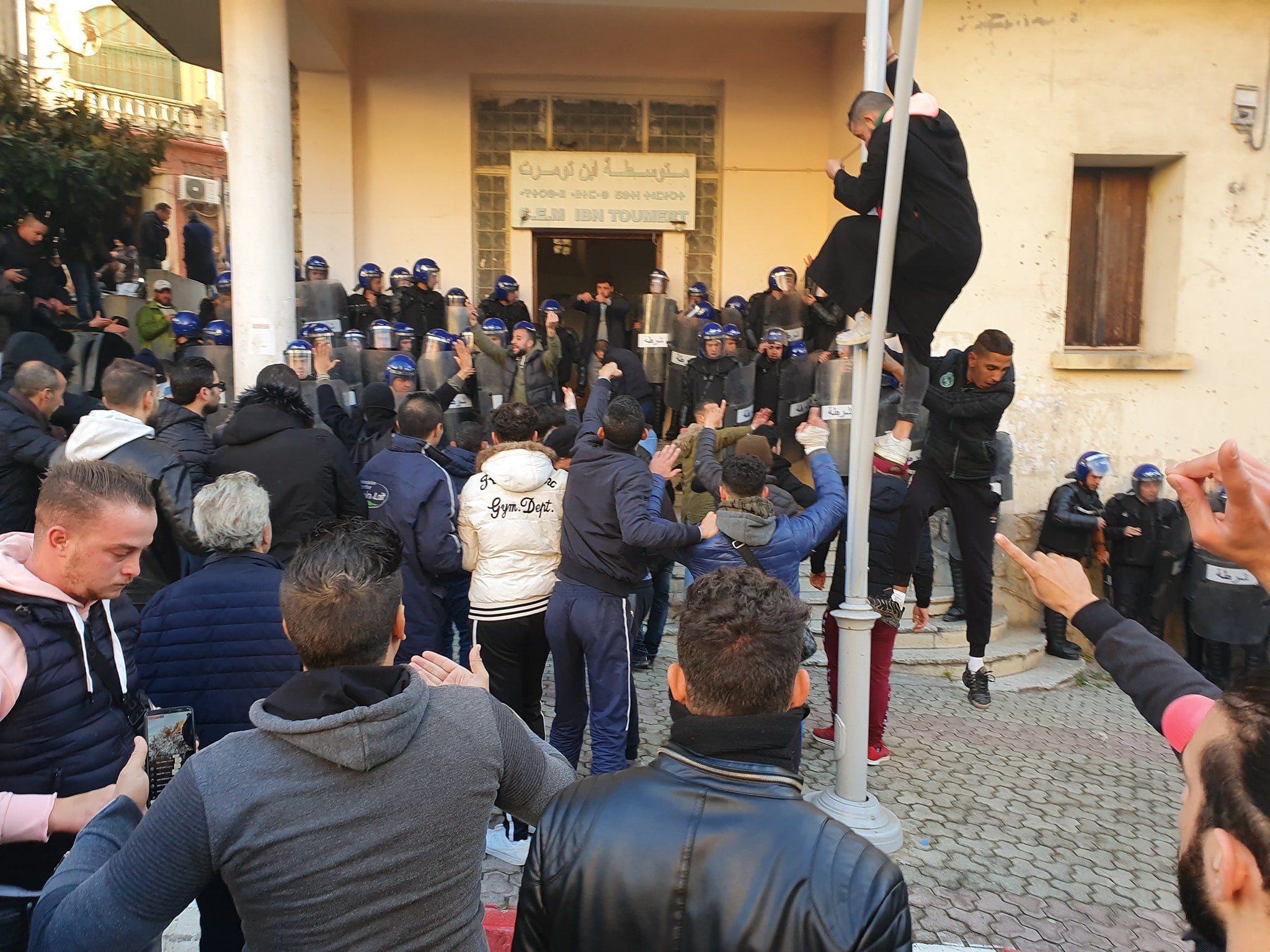 10:54: تفريق مواطنين أمام مدرسة ابن تومرت بمدينة بجاية التي تتواجد تحت تعزيزات أمنية رفضوا جعل المؤسسة مركز انتخاب.