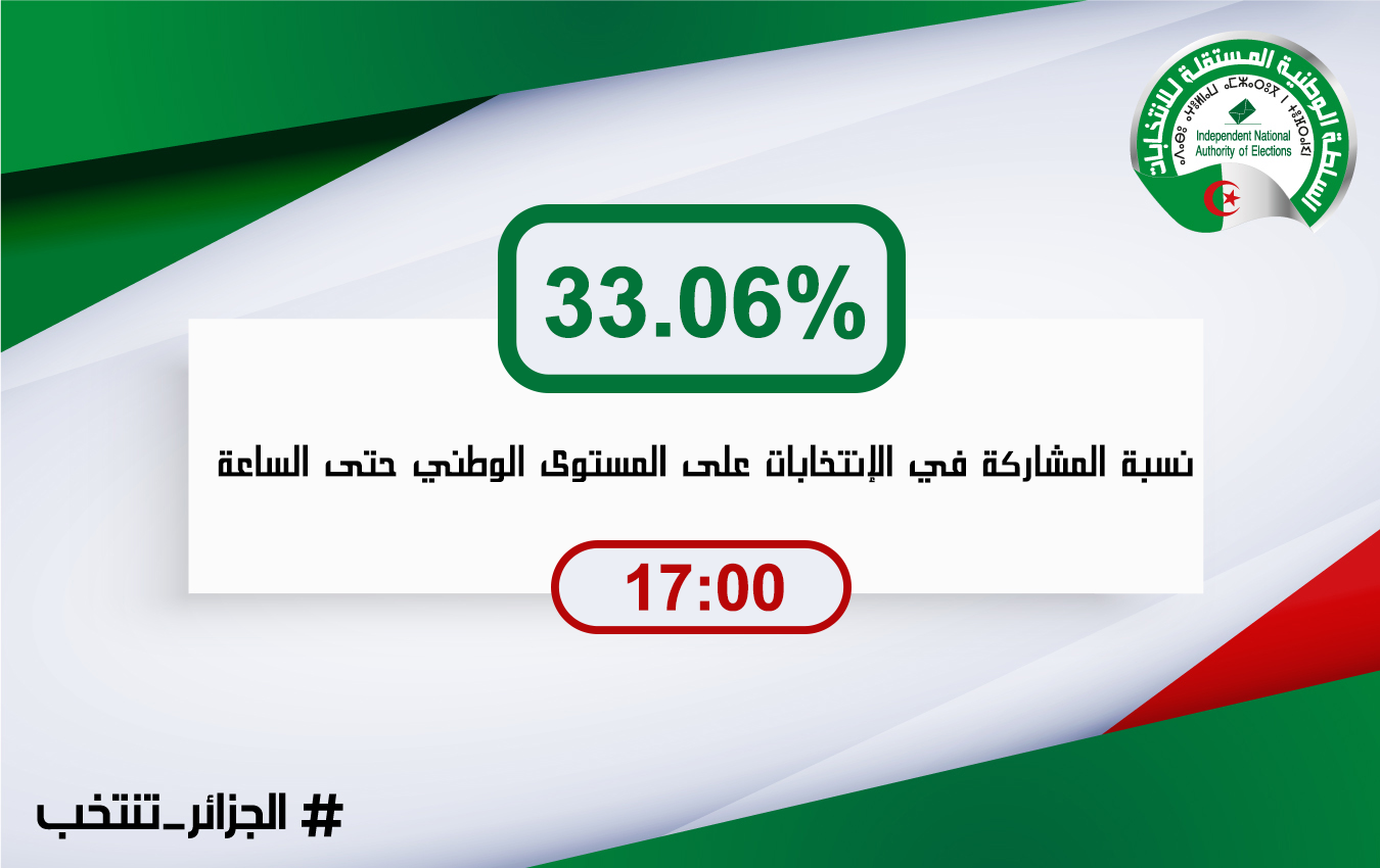 18:58: شرفي: نسبة المشاركة بلغت 33.06 بالمئة على الساعة الخامسة مساء ونتوقع أن تكون في حدود 50 بالمائة مع نهاية التصويت
